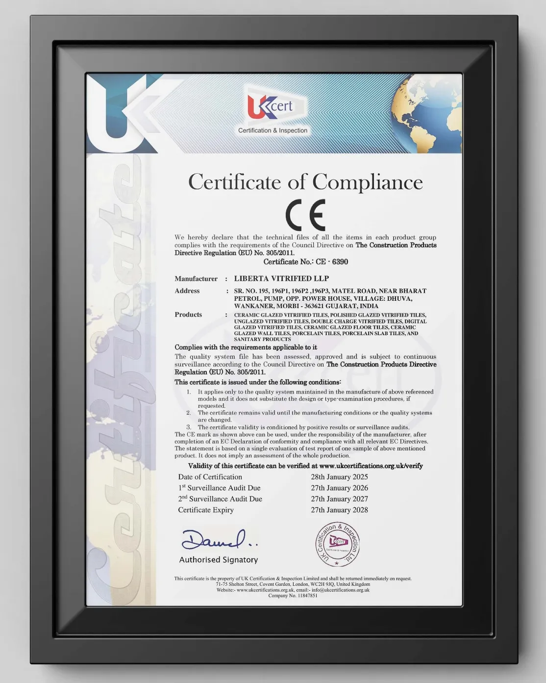 Liberta uses advanced technology and manufacturing processes in order to manufacture high-performance tiles, which, besides being beautiful, are structurally excellent too. All the tiles are subject to intensive quality testing thus certification to international standards in regards to strength, finish and durability.